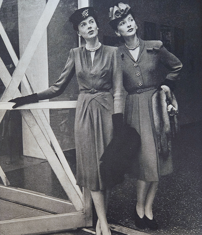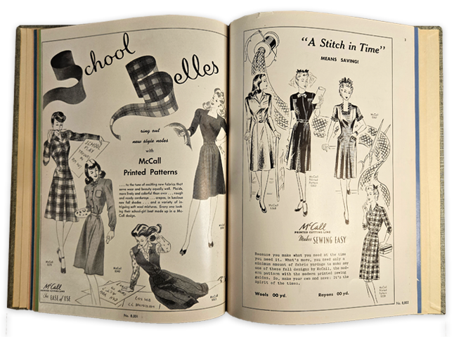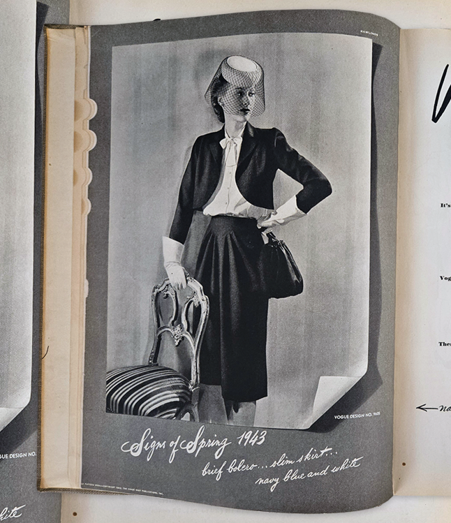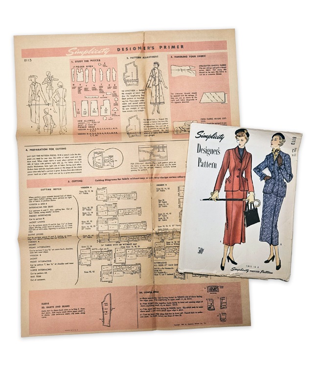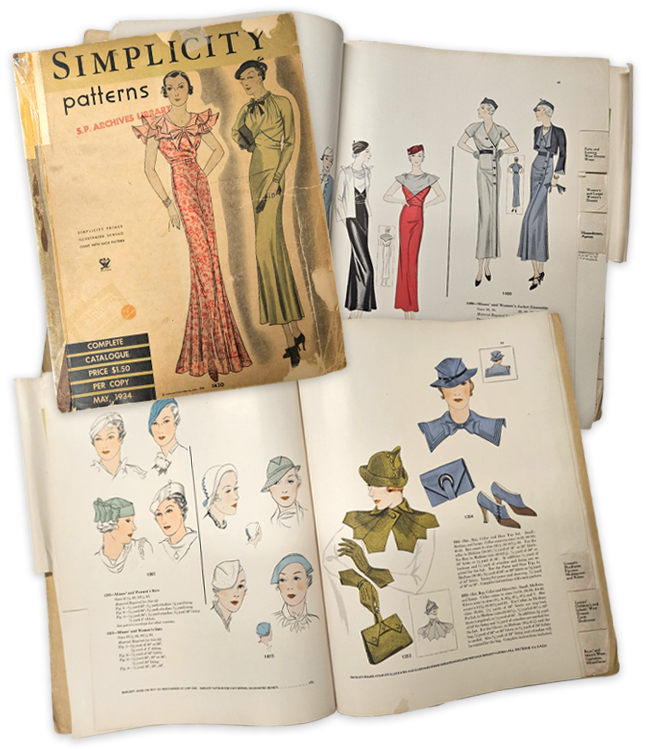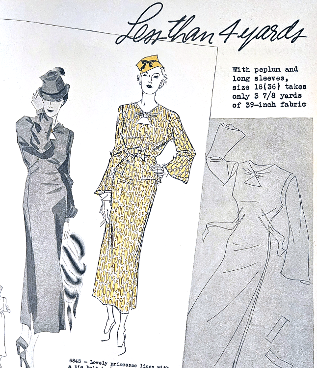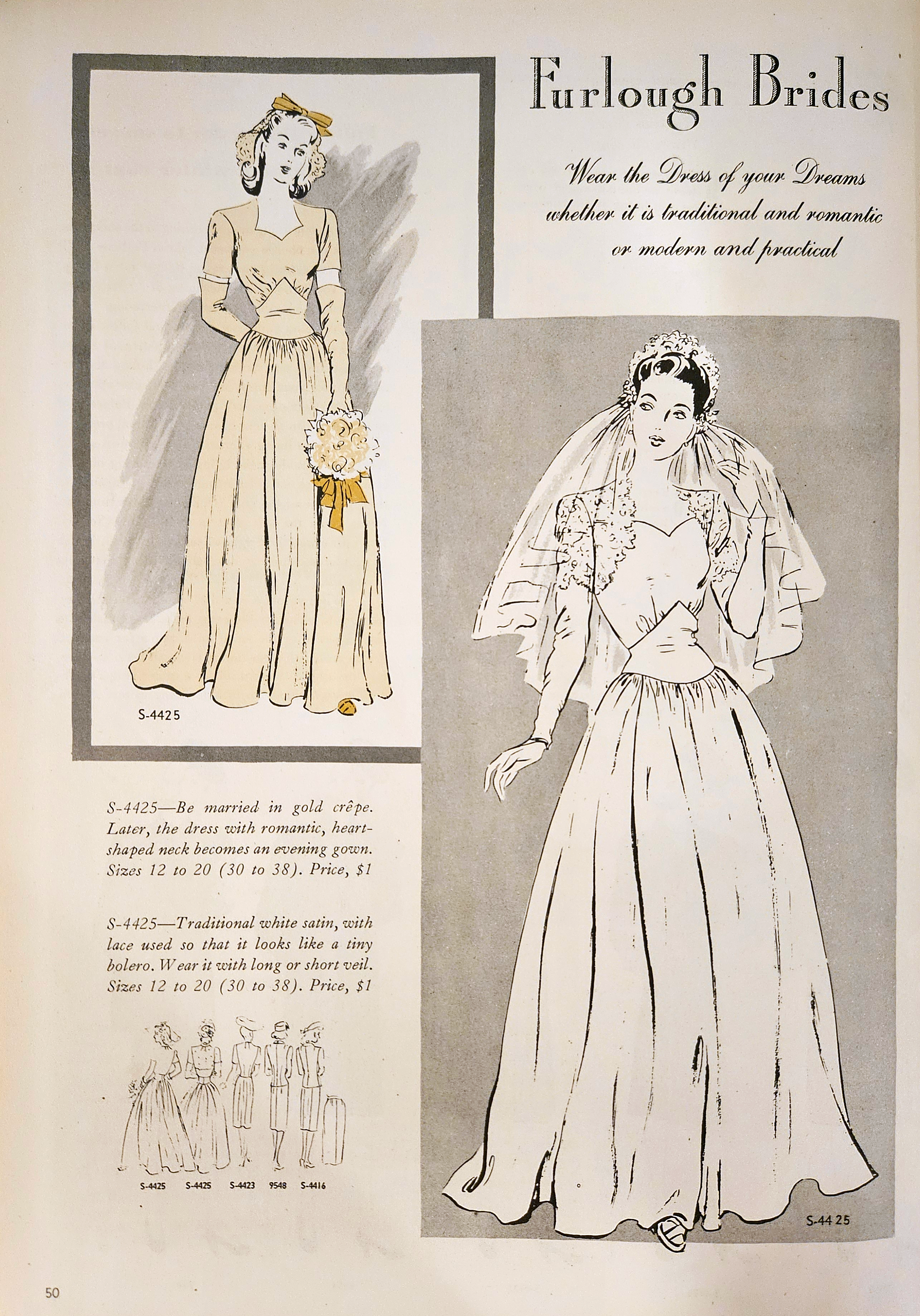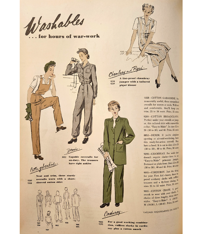 During WWII, due to rations, Simplicity and Vogue Patterns became known for sewing patterns that required minimal fabric and could be upcycled from existing dresses and suits.