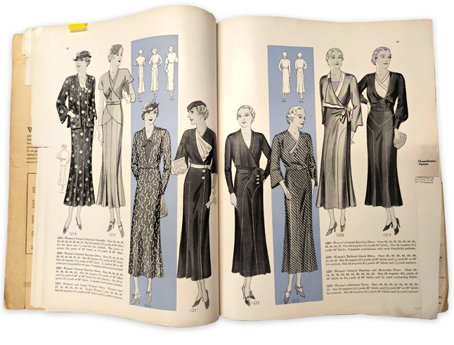 Condé Nast pattern companies begin selling designs based on the outfits worn by Hollywood movie stars who were often pictured on the pattern envelope. This offered sewists glamorous clothes on a limited budget.