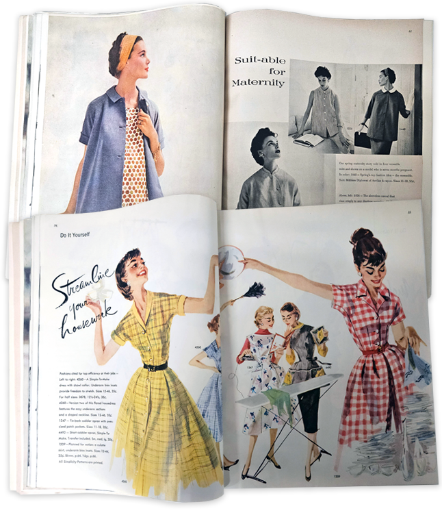 Simplicity joined McCall's by printing full-color illustrations on all pattern envelopes, enhancing visual appeal and easier to understand.
