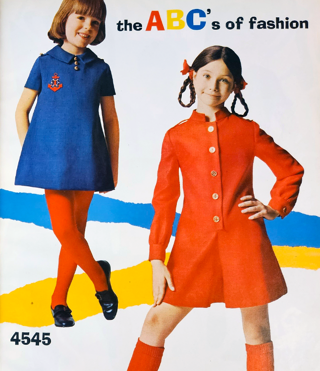 Vogue Patterns licensed 5 Yves Saint Laurent dresses from the “Mondrian et Poliakoff” Collection. The iconic shift dress was a massive trend for 60's inspired by the modern paintings of Mondrian.