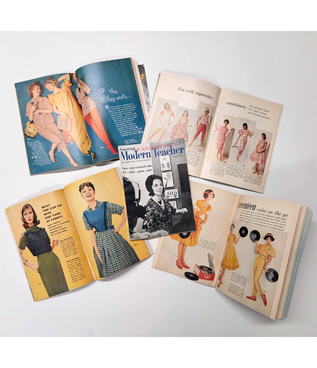 Simplicity Patterns drives public school sewing education by introducing travelling representatives for teacher training, student fashion shows, and by maintaining curriculum literature with annual updates. Home Economist and owner, Caroline Hutchinson Shapiro developed Simplicity Pattern’s Department of Education to support public schools, today Simplicity.com offers comprehensive online tutorials and discounted patterns for educators.