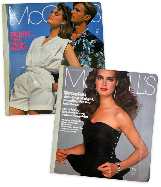 Brooke Shields debuts her "Brooke" Fashion Collection with McCall's including McCall's Crafts and Easy McCall's. Regularly appearing on the cover of McCall's Magazine, pattern catalogs, and autographed packets.