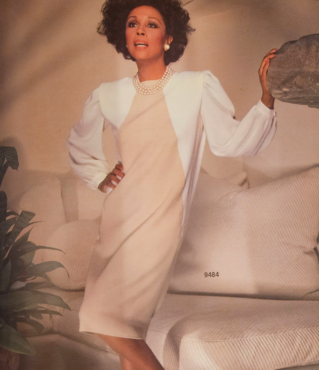 Living legend Diana Ross licenses designs to Simplicity. The Superstar models the garments ranging from gowns to swimwear on the pattern catalog cover, inside editorial and envelopes with an autograph logo.