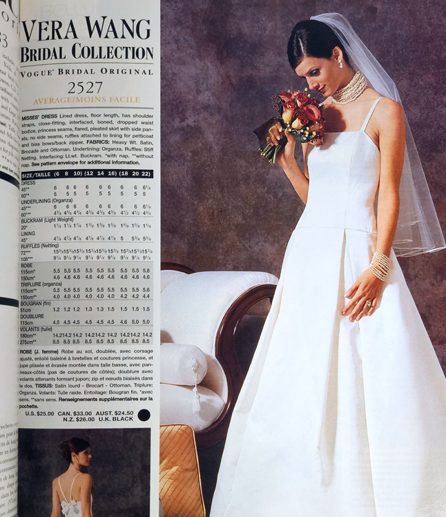 Vera Wang starts with the cover of May/June issue of Vogue Patterns magazine and catalog. Her signature sheer mesh sleeves and cuts outs are revolutionary.