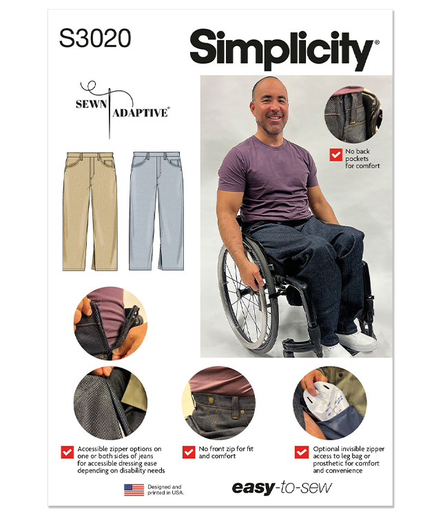 Sewn Adaptive, founded by a Hollywood costumer and bespoke tailor from Pasadena CA, license special inclusive designs for people with disabilities to Simplicity.